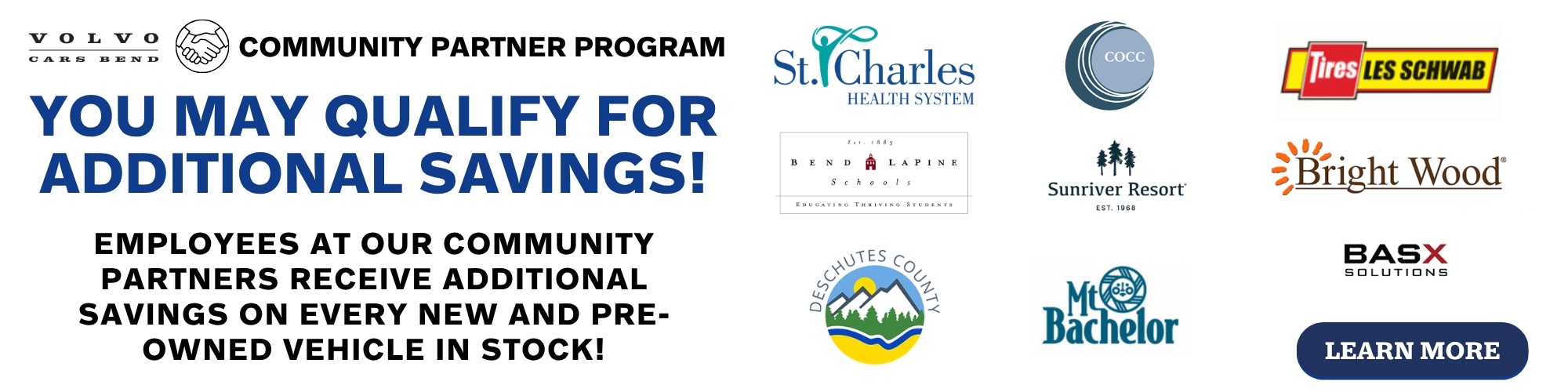 Exclusive savings on new and pre-owned Volvos for St. Charles Health System employees and other community partner employees!As a valued community partner employee, you now have access to the Volvo Cars Bend Community Partner Employee Program - an exclusive benefit designed to make purchasing a new or pre-owned Volvo simpler, more transparent, and more rewarding.